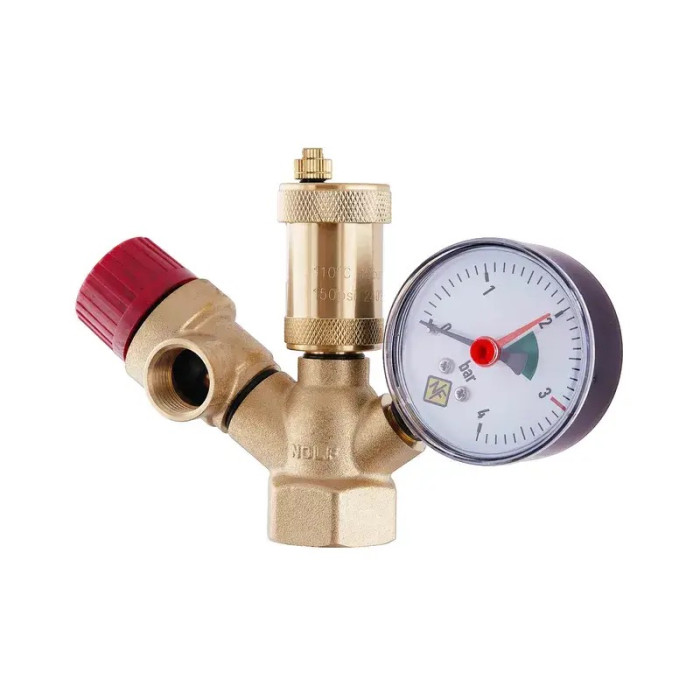 - Группа безопасности NOLF (Германия) (воздухоотводчик, предохранительный гидравлический клапан на 3 бар, манометр)