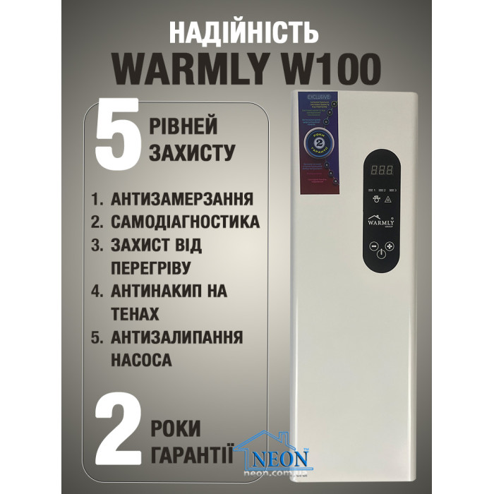 Комутація котла Warmly W100 15 виконана на основі симісторів (S), що забезпечує безшумне включення ТЕНів.