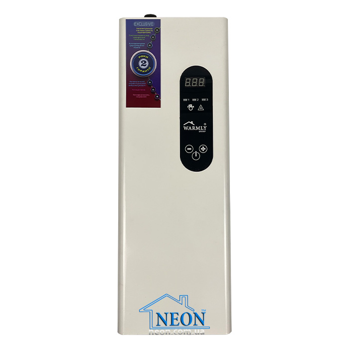 Максимальна потужність котла Warmly W100 15 становить 15 кВт, що розраховано для опалення приміщень площею до 150 кв. Включення потужності здійснюється трьома ступенями 5 – 10 – 15 кВт