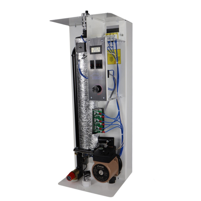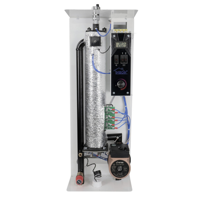 Настенный электрокотел Neon PRO Plus 9 (бесшумный) c насосом, с группой безопасности (автоматический воздухоотводчик и предохранительный (подрывной) гидравлический клапан), с расширительным бачком. Это полная комплектация для системы отопления.