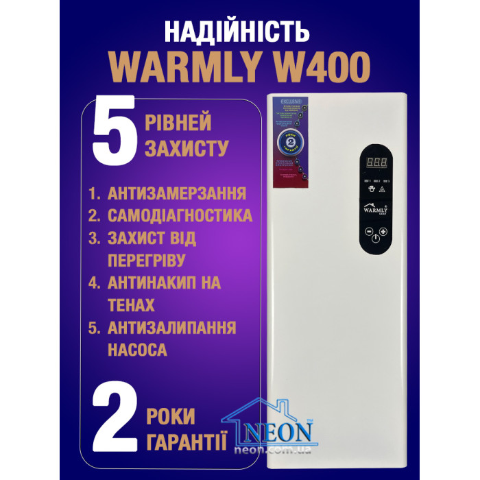 Настенный симисторный электрокотел Warmly W400 6 кВт с бесшумной коммутацией.
