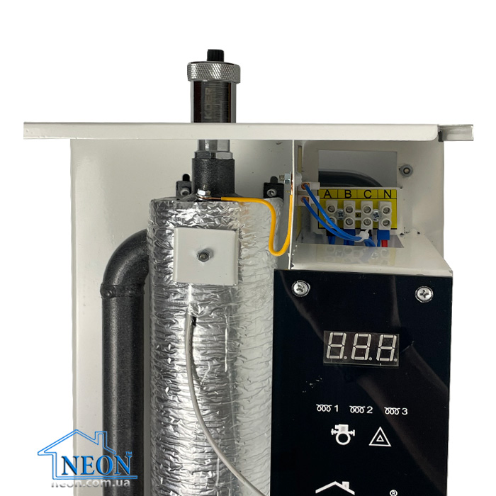 - Автоматический выбор необходимой мощности нагрева (количества включенных тэнов) котел производит самостоятельно, исходя из алгоритма расчета. Алгоритм учитывает текущую и заданную температуру теплоносителя.