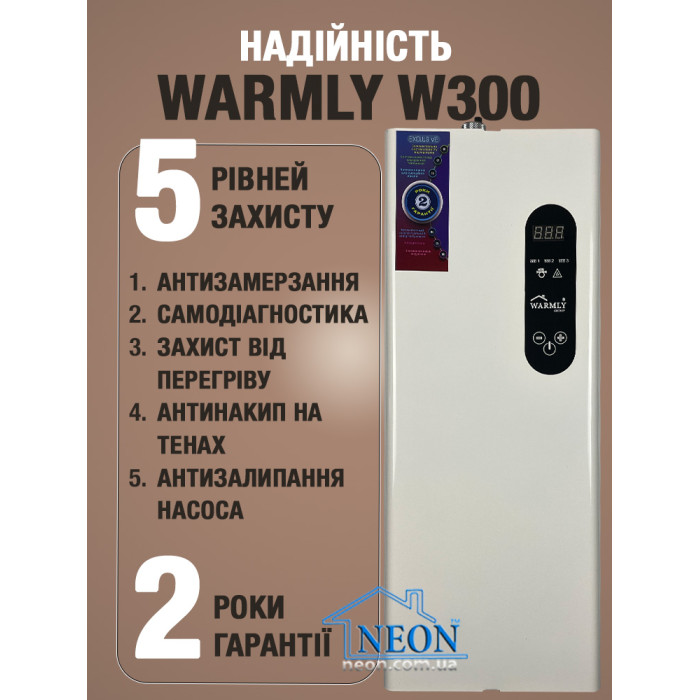 Настенный симисторный электрокотел Warmly W300 3 кВт с бесшумной коммутацией, с насосом и группой безопасности, без расширительного бачка.