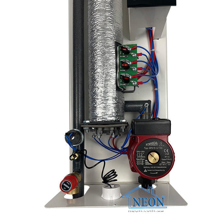 Нагревательный блок состоит из двух ТЭНов по 1,5 кВт, которые включаются с помощью кнопок на электронной панели управления котла.