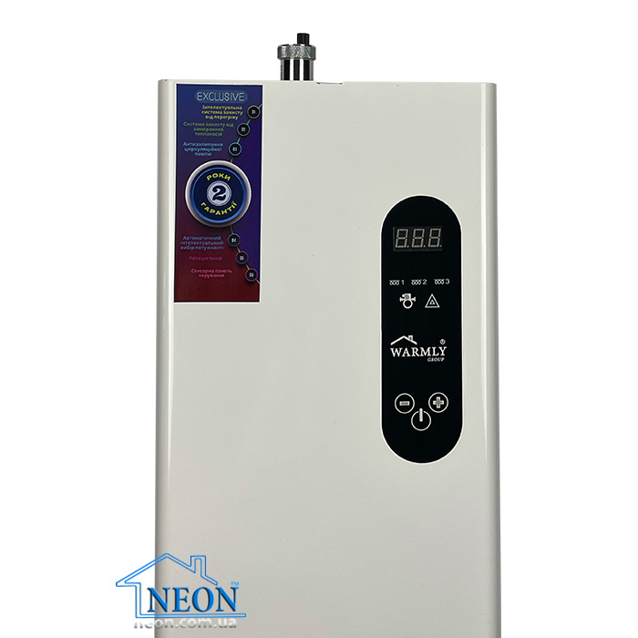 Максимальная мощность котла Warmly W300 3 составляет 3 кВт, что рассчитано для отопления помещений площадью до 30 кв.м. Включение мощности осуществляется двумя ступенями 1,5 – 3,0 кВт