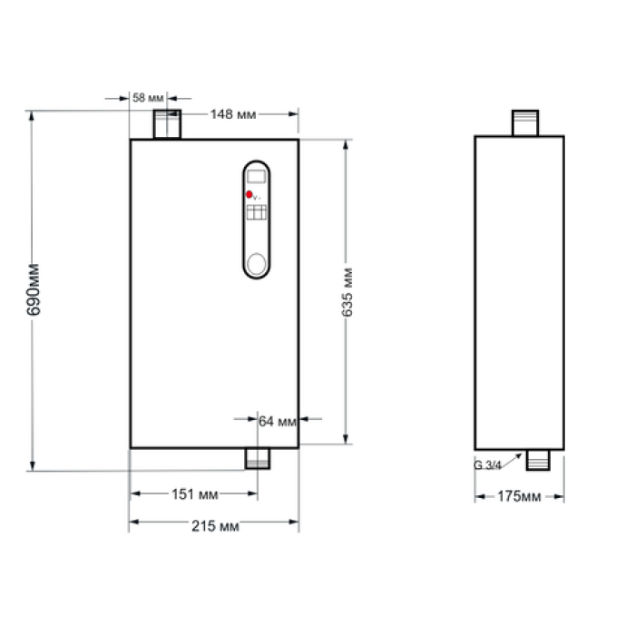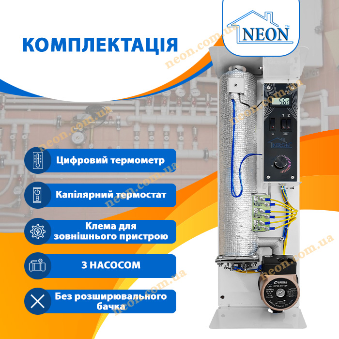 Настенный электрокотел Neon Classic M 15 (S) (бесшумный) c насосом, без расширительного бачка.