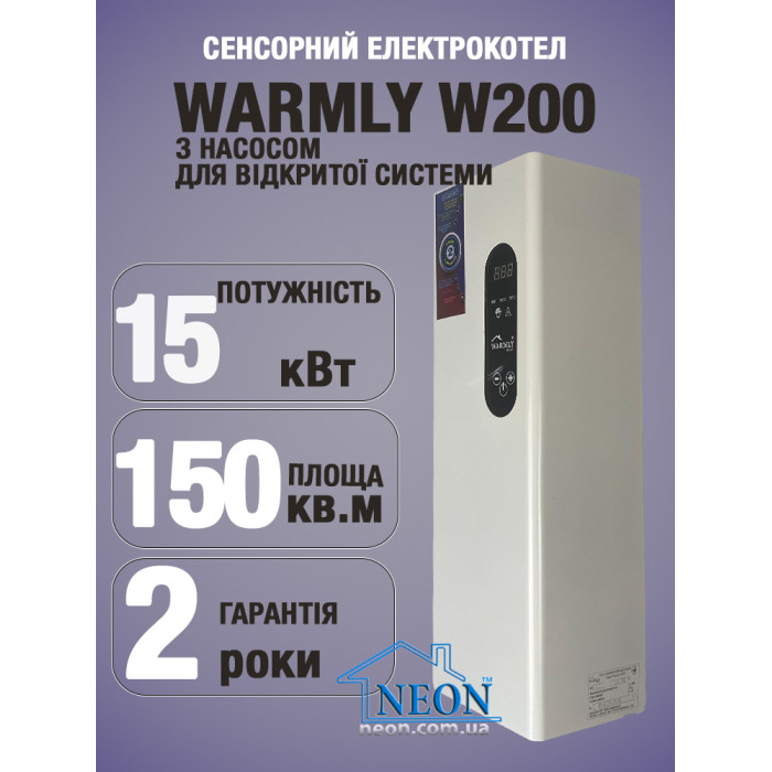 Настенный симисторный электрокотел Warmly W200 15 кВт с бесшумной коммутацией, с насосом и без расширительного бачка.